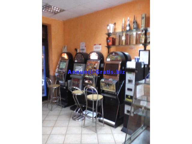 - sala con bancone 4 metri , vani frigorifero lungo tutto il bancone, macchina del caffè 3 braccia, macinino, vetrina refrigerata, registratore di cassa nuovo, lavastoviglie, 4 slot machine;