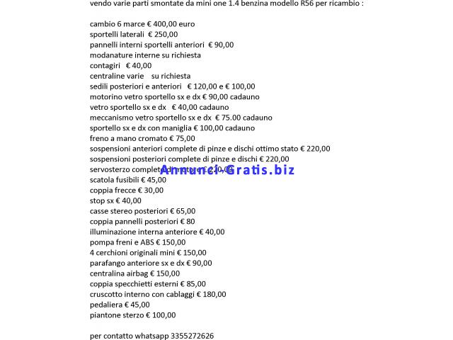 Vendo varie parti smontate da mini one 1.4 benzina modello R56 per ricambio :