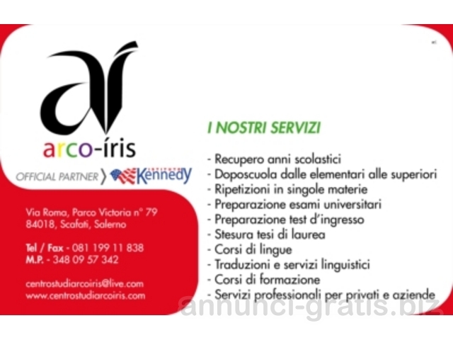 Il Centro ha realizzato decine di tesi in varie discipline, con estrema soddisfazione degli studenti. I prezzi contenuti, lo staff professionale e sempre attento alle esigenze del tesista sono i punti di forza del lavoro del Centro Studi Arco Iris, a cui si aggiunge la totale disponibilità ad effettuare il lavoro via telematica, senza l'esigenza di raggiungere la nostra sede e la possibilità di fissare incontri con i tutor in varie sedi d'Italia. Per tutte le informazioni è possibile contattare i seguenti recapiti: 08119911838 - 3480957342 - centrostudiarcoiris@live.com