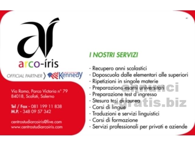 Il Centro ha realizzato decine di tesi in varie discipline, con estrema soddisfazione degli studenti. I prezzi contenuti, lo staff professionale e sempre attento alle esigenze del tesista sono i punti di forza del lavoro del Centro Studi Arco Iris, a cui si aggiunge la totale disponibilità ad effettuare il lavoro via telematica, senza l'esigenza di raggiungere la nostra sede e la possibilità di fissare incontri con i tutor in varie sedi d'Italia. Per tutte le informazioni è possibile contattare i seguenti recapiti: 08119911838 - 3480957342 - centrostudiarcoiris@live.com