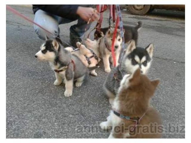 buongiorno a voi là fuori, ci si dispone di tre belle in cerca Siberian Husky cuccioli per l'adozione quindi per favore, se siete interessati poi tornare a noi per ulteriori informazioni e immagini relative al processo di adozione.
