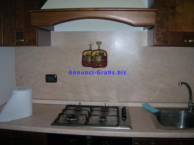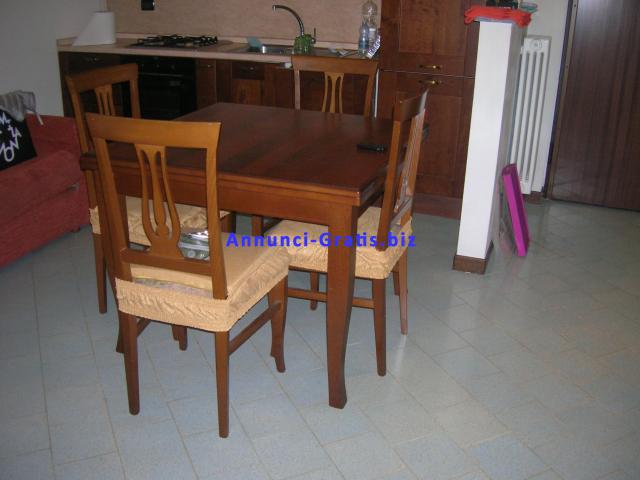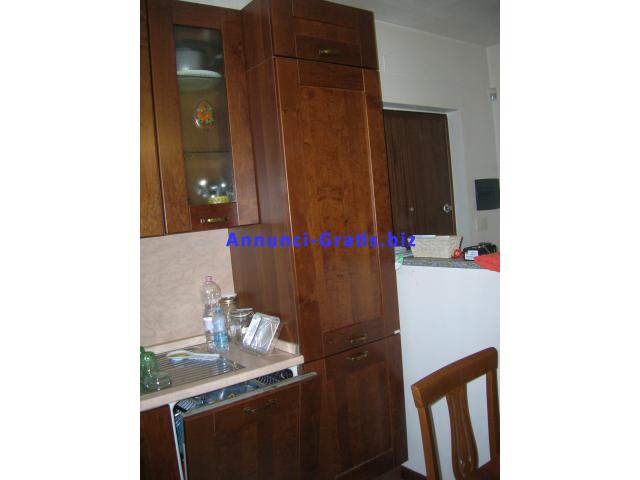 Cucina componibile in legno noce top color salmone antigraffio completa di pensili scolapiatti- lavastoviglie - frigo/frizeer - forno elettrico ventilato-lavello in acciaio inox-piano cottura quattro fuochi a gas a norma di sicurezza tavolo a libro allungabile - quattro sedie. La cucina è stata usata circa tre mesi è praticamente nuova senza un graffio.Misura 3 mt. di lunghezza. Gli elettrodomestici sono tutti di marca REX.