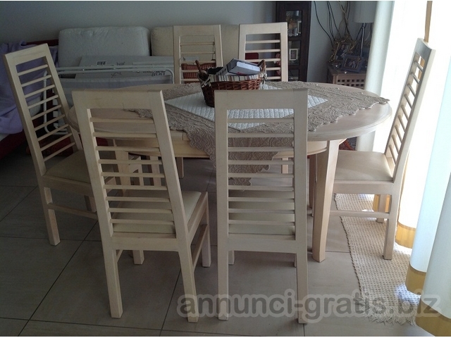 TAVOLO ARTIGIANALE COMPLETO DI 6 SEDIE IN LEGNO COLORE PANNA ALLUNGABILE PROVIENE DA UN ARTIGIANO IN MAROCCO RICHIESTA EURO 350 PAGATO OLTRE 1000 EURO