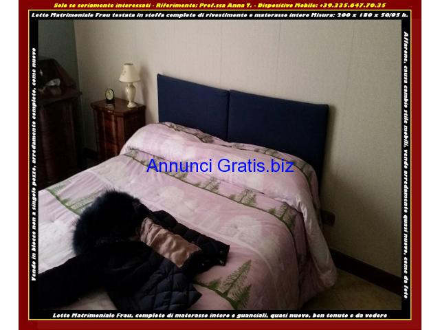 02) Letto Matrimoniale Modello Frau, con testata in stoffa, completo di rivestimento in stoffa e materasso unico (misura: 200 x 180 x 50/95 h.)