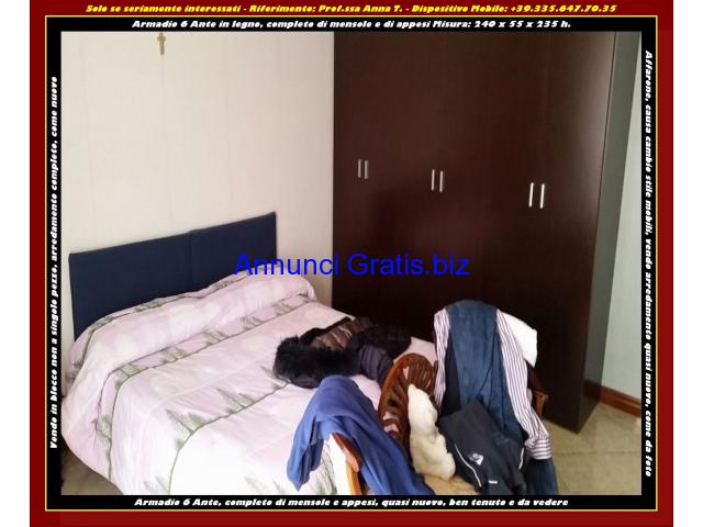 01) Armadio 6 Ante in legno, completo di mensole e di appesi (misura: 240 x 55 x 235 h.)