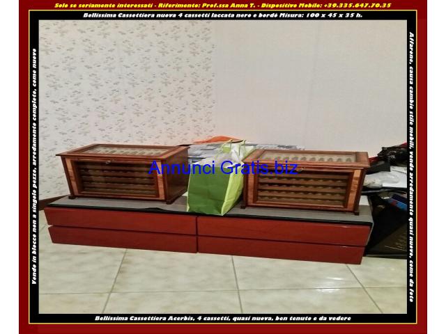 04) Cassettiera a 4 cassetti, laccata nero e bordò (misura: 100 x 45 x 35 h.)