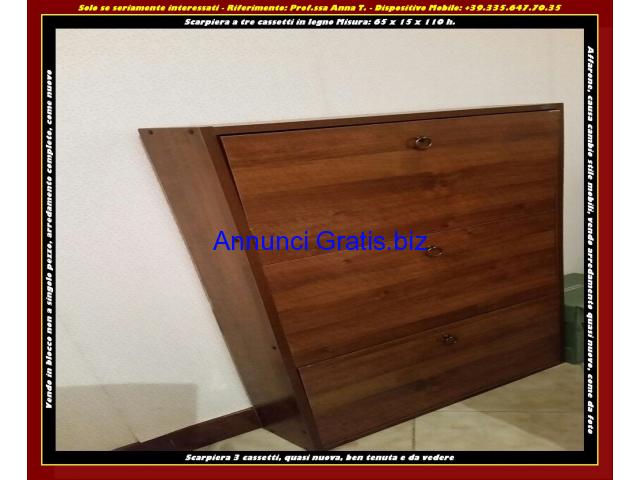 06) Scarpiera a tre cassetti in legno (misura: 65 x 15 x 110 h.)