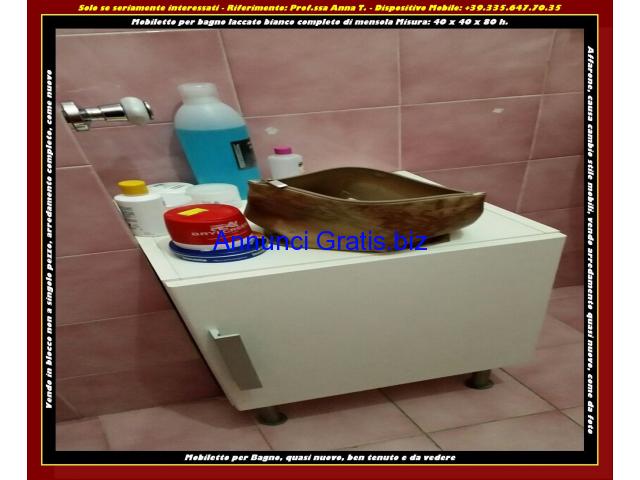09) Mobiletto laccato bianco completo di mensola (misura: 40 x 40 x 80 h.)