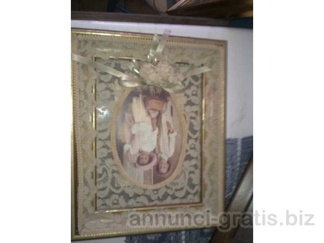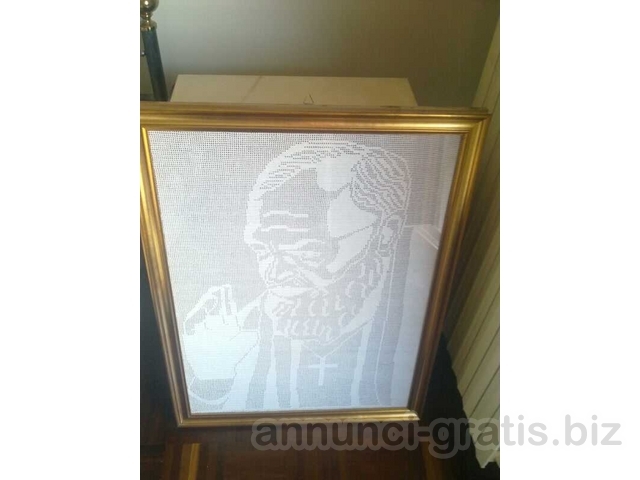 Si tratta di quadri ad olio (non autori noti), quadri punto croce, un quadro all'uncinetto (di grandi dimensioni) raffigurante Padre Pio e regalo stampe.