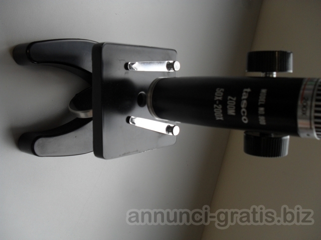 Vendo microscopio didattico TASCO COD. 900 con qualche segno d'uso ma perfetto otticamente. Senza scatola o confezione, senza accessori, ha un'ottica pari a microscopi dal valore ben più elevata. Dimensioni ridotte per una perfetta trasportabilità. Non ha illuminazione ma ha lo specchietto condensatore di luce. Ingrandimenti zoom da 50x a 200x.