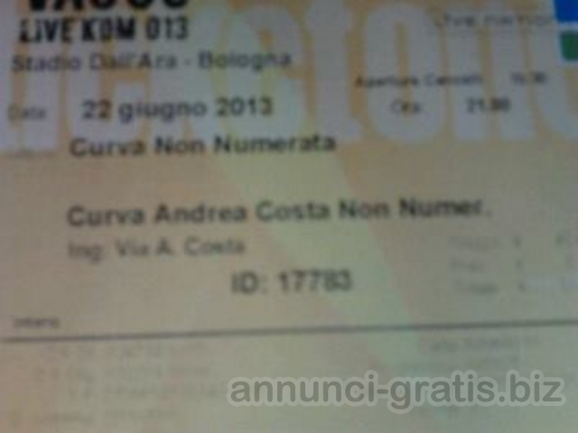 Vendo un biglietto per il Concerto Vasco Bologna 22 in curva