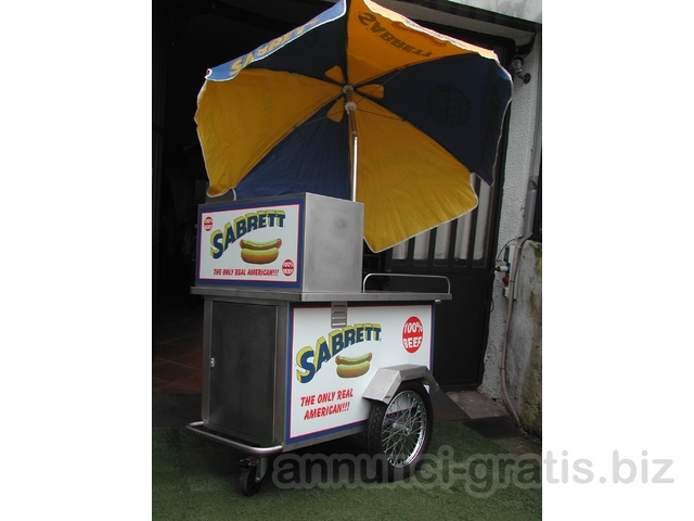 Noleggiamo con operatore,bellissimo carretto per Hot Dog,completamente in inox è alimentato a corrente 220V.Questo lo rende idoneo per essere inserito sia in luoghi all'aperto che in location al chiuso.Dato la sua alta visibilità è perfetto per feste private,eventi e per pubblicizzare locali.