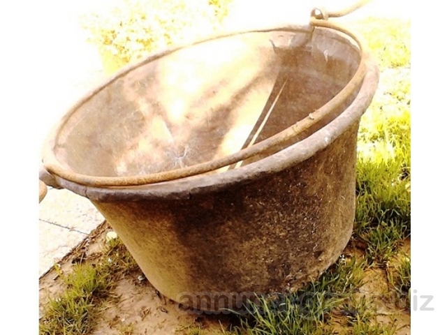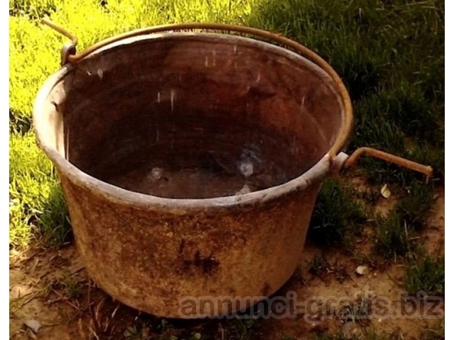 Paiolo antico in rame massiccio con manico, perfettamente conservato. Può essere utilizzato come ampia ed originale fioriera da giardino, come espositore di prodotti tipici di qualità, di bottiglie di vino pregiate e/o come caratteristico complemento d'arredo rustico/vintage.