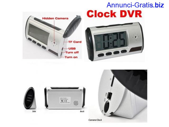 Descrizione: questo prodotto è un orologio multiuso fornisce le funzioni di dv compreso video, audio, il rilevamento del movimento, web camera, supporta micro sd card , fino a 32 gb,la batteria ad alta capacità fornisce energia sufficiente per un durata di circa 12 ore di sorveglianza , può essere utilizzato come monitor di sicurezza domestica. questa spy camera sembra essere un innocente orologio digitale , ma sotto c'è una telecamera segreta situata , che consente di registrare video e audio. l'obiettivo perfettamente nascosta e microfono rendono questo gadget spia praticamente inosservabile. e c'è molto di più.... questo orologio digitale fotocamera spia è dotato di registrazione motion detection. impostando questa modalità, si registra solo quando viene rilevato un movimento di fronte a l'orologio. altra caratteristica che la distingue da altri modelli è la sovrascrittura automatica cio' significa che se la memoria viene esaurita il dispositivo continua a registrare cancellando solo i file piu' vecchi... da mettere nel tuo ufficio, il bagno, o la sala riunioni, potrete scoprire cosa fanno in vostra assenza. nessuna installazione di software, nessuna configurazione complicata. la registrazione è semplicemente un solo tocco di un tasto sul telecomando incluso.