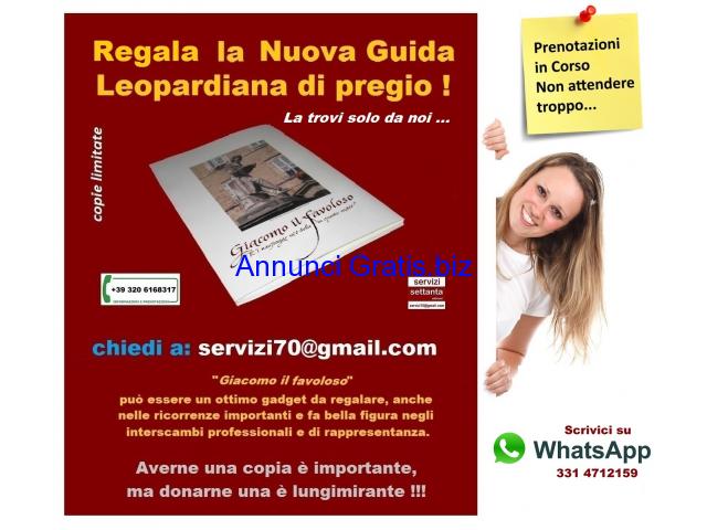 Una guida Leopardiana al passo con i tempi, snella, viva, bella, pulsante, adatta a tutti, famiglie, giovani, anziani, amanti della Cultura, turisti, … “Giacomo il favoloso” può essere un ottimo gadget da regalare, anche nelle ricorrenze importanti e fa bella figura negli interscambi Professionali e di Rappresentanza.